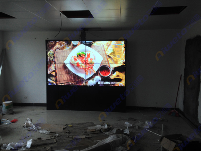 通過對客戶使用需求和部署環境的認真研究和考察,Aiweto(艾維圖)科技工程師給出了多套相關解決方案,最終選用了由4臺(Aiweto) 55寸3.5mm液晶拼接單元組成的2×2大屏幕液晶拼接墻。(Aiweto) 55寸液晶拼接單元采用先進的集成處理芯片,性能穩定,運動圖像補償等獨有的先進技術,有效的保證了輸出圖像的效果,支持7×24小時開機,拼接邊縫小,適合大屏液晶拼接項目應用。