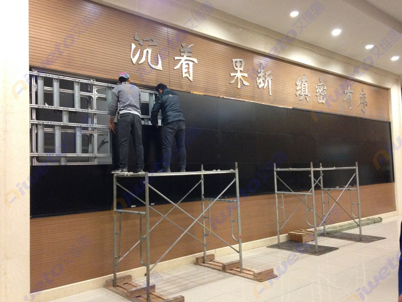 通過對客戶使用需求和部署環(huán)境的認(rèn)真研究和考察,Aiweto(艾維圖)科技工程師給出了多套相關(guān)解決方案,最終選用了由40臺(Aiweto)55寸高亮液晶拼接單元組成的4×10大屏幕液晶拼接墻。(Aiweto)55寸液晶拼接單元采用工業(yè)級面板,采用先進的集成處理芯片,性能穩(wěn)定,運動圖像補償?shù)泉氂械南冗M技術(shù),有效的保證了輸出圖像的效果,支持7×24小時開機,拼接邊縫小,適合大屏液晶拼接項目應(yīng)用。