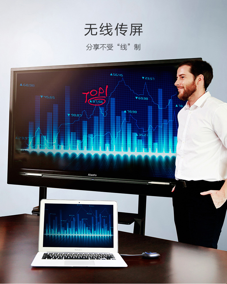Aiweto(艾維圖)會議多媒體觸摸一體機采用LG商用IPS硬屏,全高(1920*1080)顯示,具有178度視角,高對比度和亮度,3D數字降噪,智能消除殘影、重影等失真現象,使得顯示畫面更清晰,穩定,色彩更鮮艷;